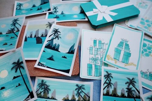 2021年初めての【水彩画】は 大好きな色を使って描いてみました♡ 好きな色 "ミントグリーン" 青×緑×白 の3色の絵の具を混ぜると作れます。 ティファニーブルーとも言われてるみたいです。 この色をベースに最初に描いた絵は、 やっぱりベトナムの風景。 ハ…