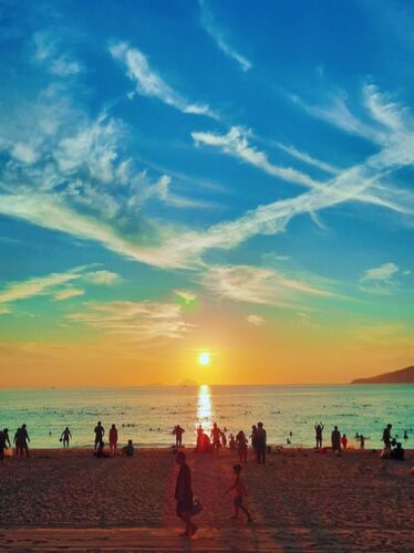 ニャチャンで撮った数々の写真を見返して、暖かい風やその時の空気も一緒に思い出しています。 中でもニャチャンビーチに登る朝日を撮影したこの写真はとてもお気に入りです。 この写真を絵にしてみました。 少し大きめのキャンバスにアクリル絵の具を使って…